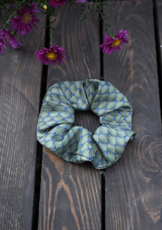 Ta scrunchie została wykonana z prawdziwego jedwabnego krawata vintage– materiału, który dba o włosy w sposób wyjątkowo delikatny.